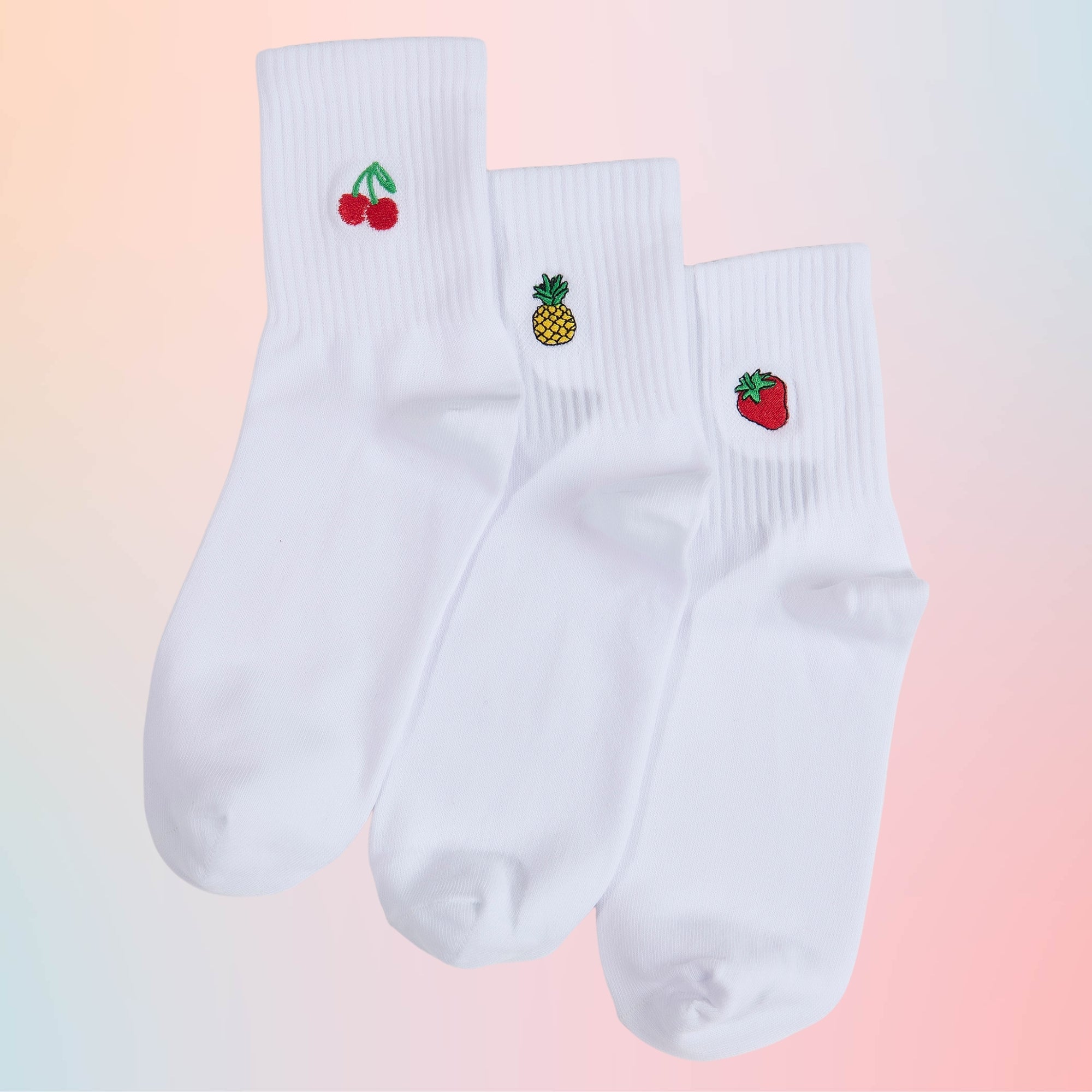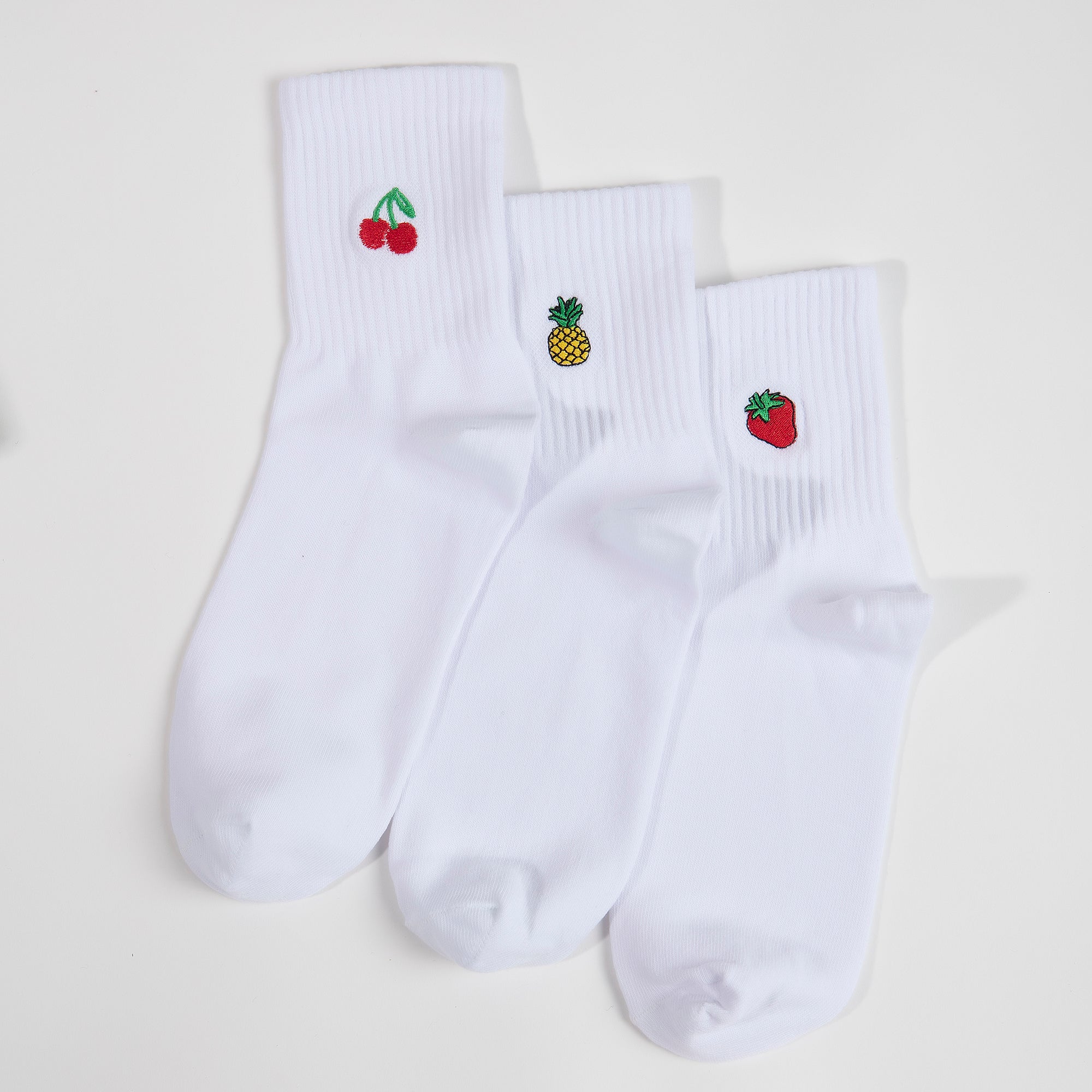 Fruit Punch 3pack Embroidery Ladies Crew Socks