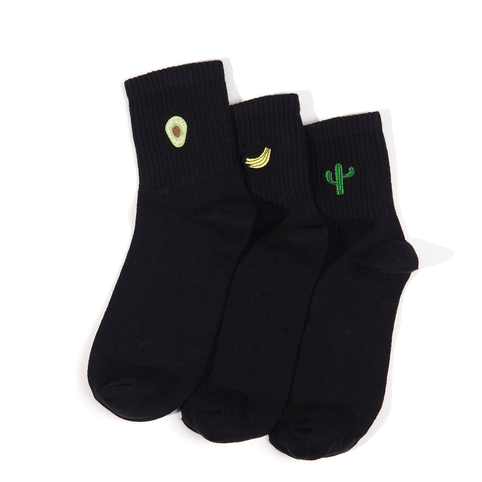 Quirky Greens 3pack Embroidery Ladies Crew Socks